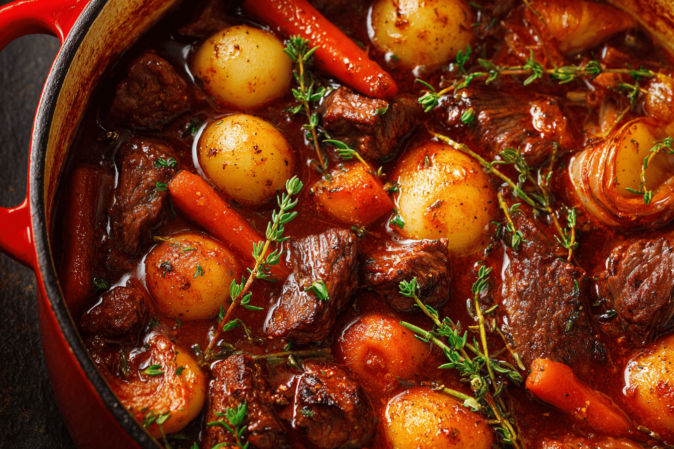 A hearty and flavorful one-pot beef stew packed with tender meat, vegetables, and a savory broth. Perfect for cold nights, easy dinners, or make-ahead meals.