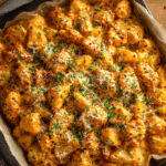 Creamy & Garlic Cheesy Chicken Potato Bowl is the kind of meal that feels deeply satisfying from the first warm bite. Tender, seasoned chicken rests over golden roasted potatoes, all finished with a rich garlic cream sauce and a generous layer of melted cheese. The combination is comforting, filling, and packed with savory flavor.