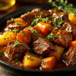 This Korean Style Pot Roast transforms a classic comfort dish into something irresistibly bold, savory, and mouthwateringly tender. Imagine a slow-braised chuck roast infused with Korean-inspired flavors — soy sauce, sesame oil, garlic, ginger, and a touch of sweetness — melting into fork-tender shreds in a glossy, flavorful sauce.