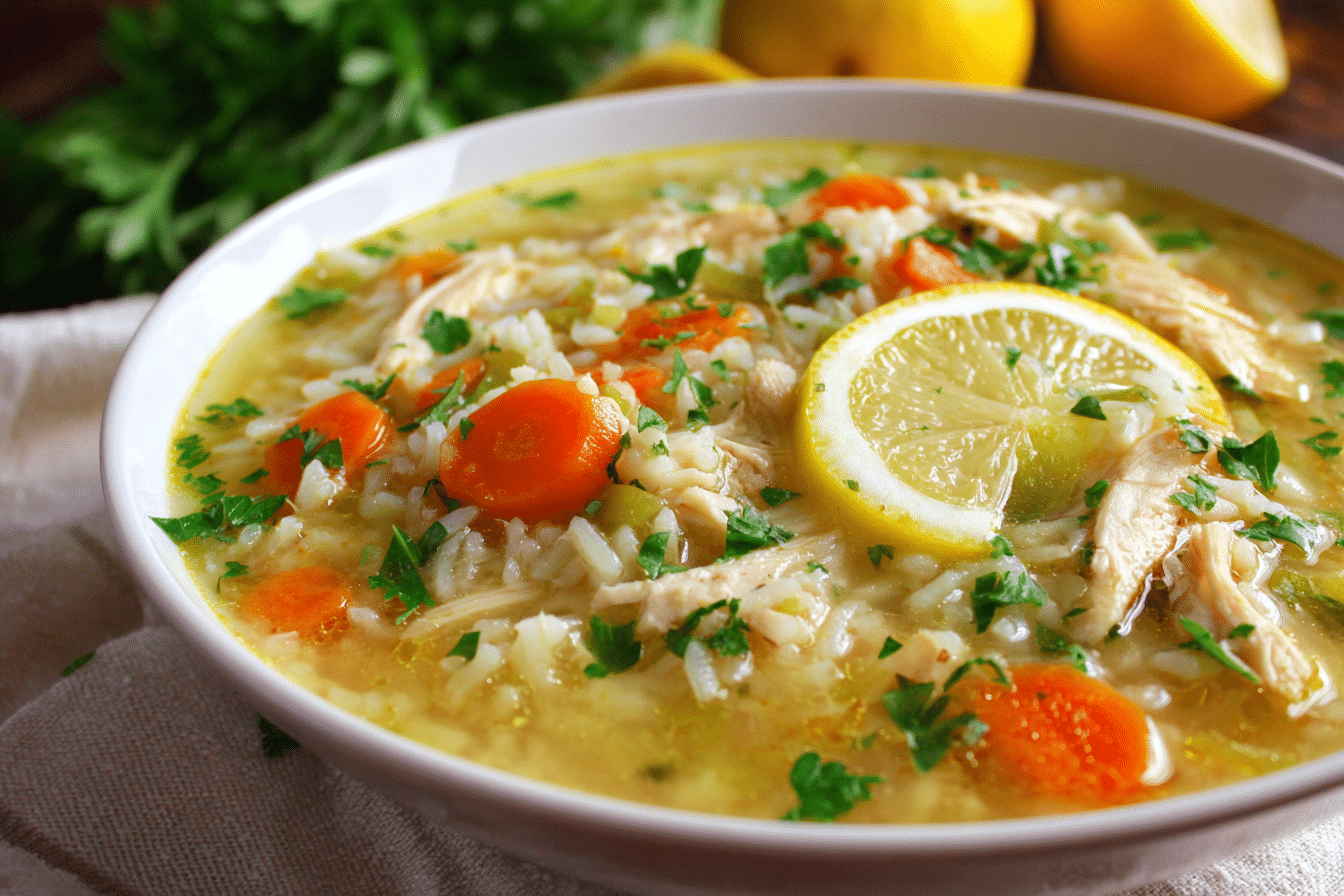 A nourishing one-pot soup featuring lemon, ginger, turmeric, and tender chicken with rice. Bright, warming, and deeply comforting.