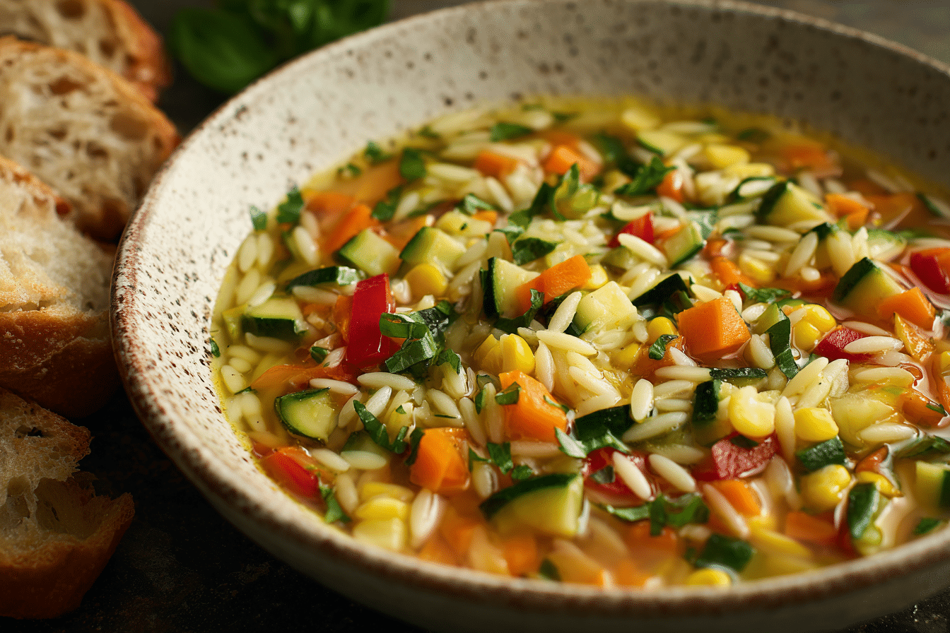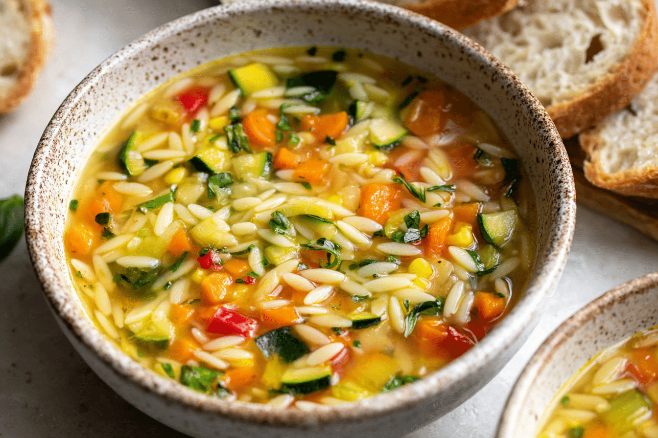 A refreshing yet hearty Mediterranean soup filled with orzo, vegetables, herbs, and a bright lemony finish. Perfect for weeknights, meal prep, or light meals.