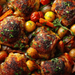 One-Pan Mediterranean Chicken is a simple, home-style dish inspired by the everyday cooking of southern Europe, where meals are built around fresh ingredients, olive oil, and gentle seasoning. In Mediterranean kitchens, chicken is often cooked with vegetables, herbs, and citrus in a single vessel, allowing flavors to mingle naturally as everything cooks together.