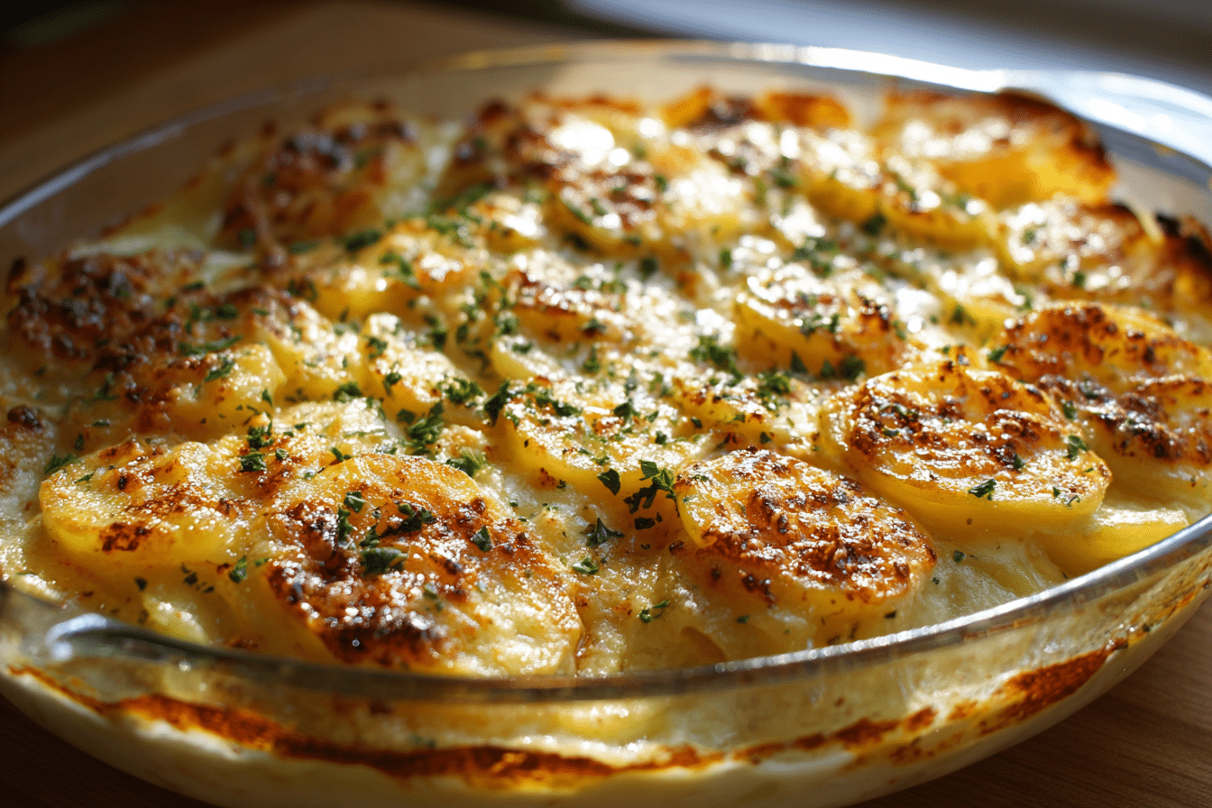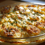Tender sliced potatoes baked in a rich, garlicky Parmesan cream sauce — golden, creamy, and perfect for holidays or comfort food nights.