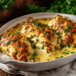 Smothered Cheesy Sour Cream Chicken is the kind of dish that feels like a warm hug on a plate. Tender chicken breasts are blanketed in a rich, tangy sour cream sauce, layered with sharp cheddar cheese, and baked until bubbly and golden. It’s simple, soul-soothing, and perfect for busy weeknights or lazy Sundays when you want something hearty but easy.