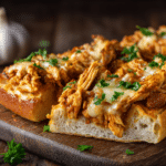 Tandoori chicken garlic bread is the ultimate East-meets-West snack — combining the smoky, spiced flavor of classic Indian tandoori chicken with the melty, buttery goodness of cheesy garlic bread. Imagine tender pieces of marinated chicken layered on top of crusty garlic bread, smothered in cheese, and toasted to golden perfection.